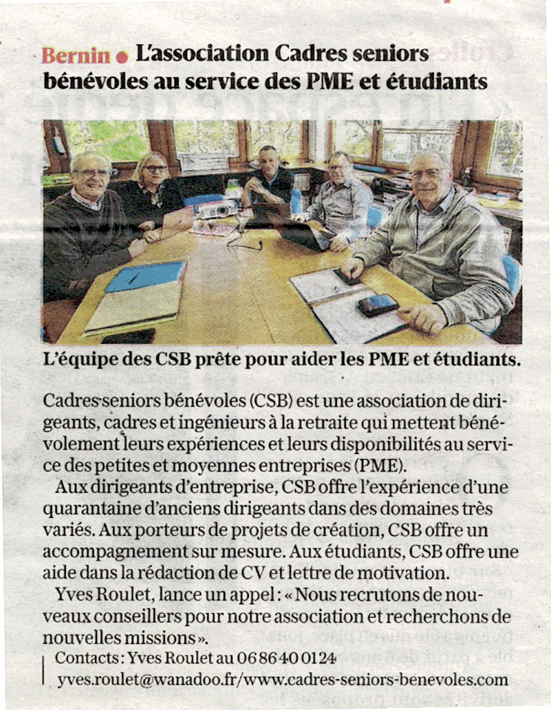 Dans son numéro du 25 Octobre 2025 le Dauphiné Libéré a mis en avant notre association en présentant les apports de l’association dans les domaines suivants : Création d’entreprise, Insertion des jeunes diplômés, Retour à l’emploi et Développement/Transformation de l’entreprise.
